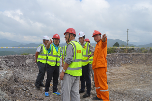 9月12日上午,華潤水泥總裁紀(jì)友紅、華潤水泥福建大區(qū)兼福建水泥總經(jīng)理何友棟、福建水泥副總經(jīng)理李小明、鄭志強及煉石水泥廠領(lǐng)導(dǎo)班子一行到洋菇山礦山現(xiàn)場進行考察。