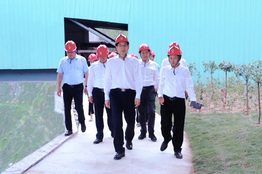 周育先一行率先赴九江瑞昌調(diào)研中建材新材料有限公司,聽取了華東材料黨委書記、總裁,中建材新材料董事長(zhǎng)王盛偉關(guān)于瑞昌項(xiàng)目建設(shè)、智慧礦山、生產(chǎn)準(zhǔn)備等匯報(bào),并深入現(xiàn)場(chǎng)調(diào)研了礦山、骨料線、廊道建設(shè)情況。該項(xiàng)目自2021年3月開工,期間克服環(huán)保督察、特大洪水、新冠疫情等影響,在實(shí)際建設(shè)期不足一年的情況下,基本建成3000萬(wàn)噸/年超大型礦山骨料生產(chǎn)基地,周育先對(duì)此給予充分肯定,并對(duì)項(xiàng)目綠色化、智能化、高端化、精細(xì)化水平給予高度評(píng)價(jià)。關(guān)于下一步工作,周育先提出三點(diǎn)要求:一是做好規(guī)劃設(shè)計(jì),通過(guò)信息化、數(shù)字化、智能化實(shí)現(xiàn)企業(yè)未來(lái)的高效運(yùn)營(yíng);二是加快項(xiàng)目建設(shè),早投產(chǎn)早見效;三是加強(qiáng)防疫與安全環(huán)保,做好礦山復(fù)綠工作,繼續(xù)穩(wěn)定綠色發(fā)展。
